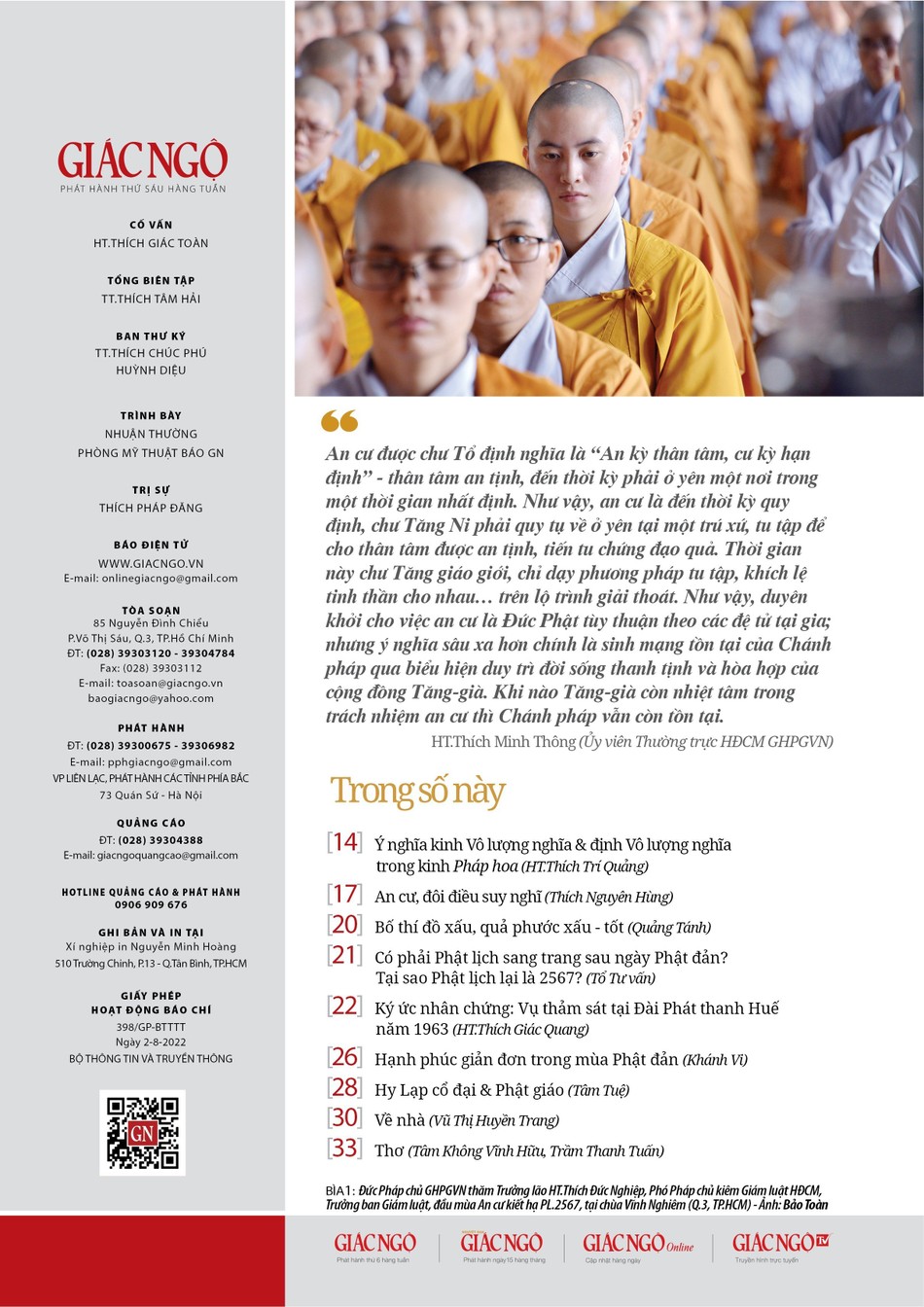 Mời bạn đọc cùng theo dõi bài viết: "An cư đôi điều suy nghĩ" của tác giả Thích Nguyên Hùng đăng trên mục Phật học của Báo Giác Ngộ số 1205 ra ngày 9-6-2023.