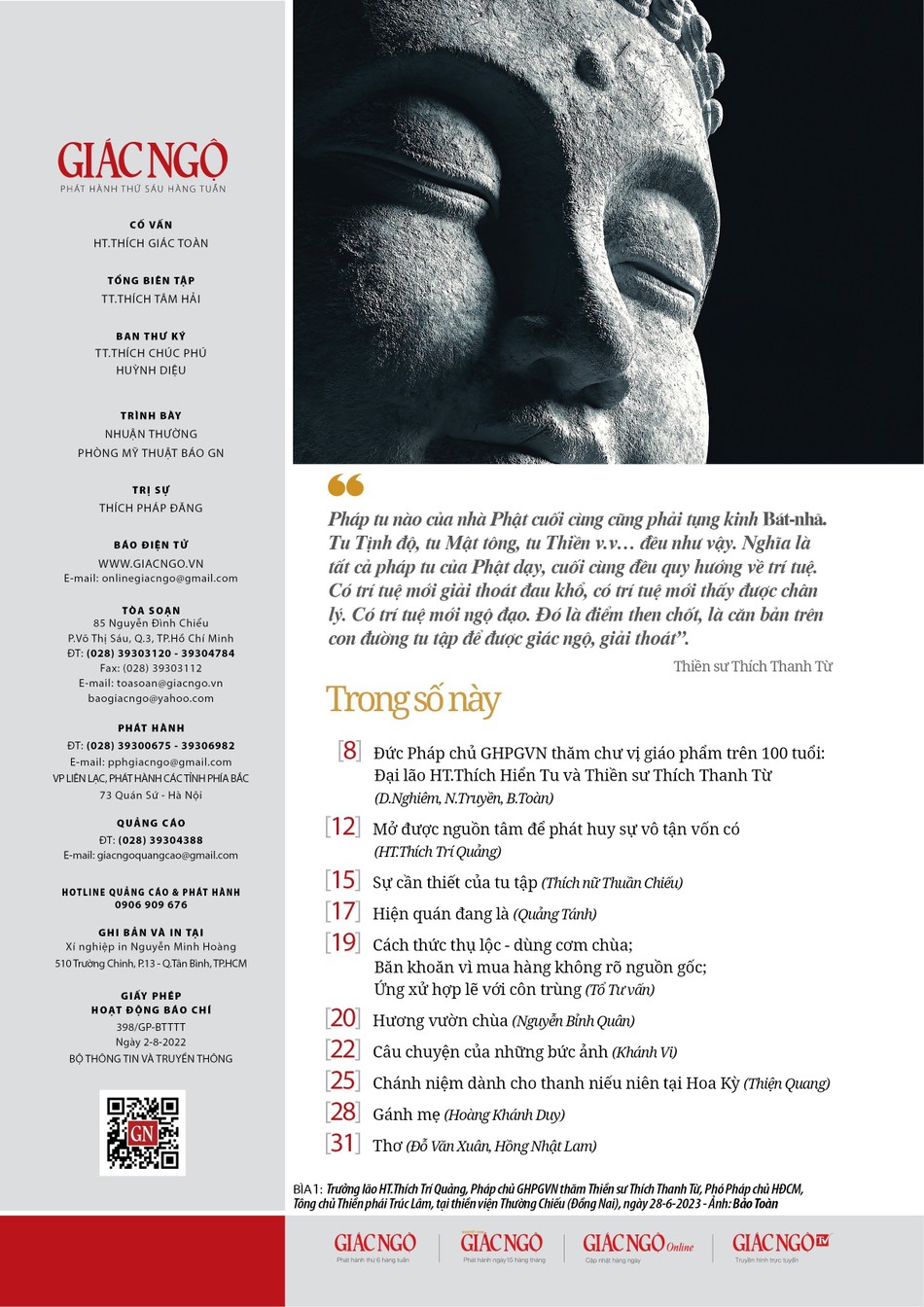 Mời bạn đọc cùng theo dõi chuyến thăm đặc biệt này của Đức Pháp chủ GHPGVN trên Báo Giác Ngộ số 1209, ra ngày 7-7-2023.