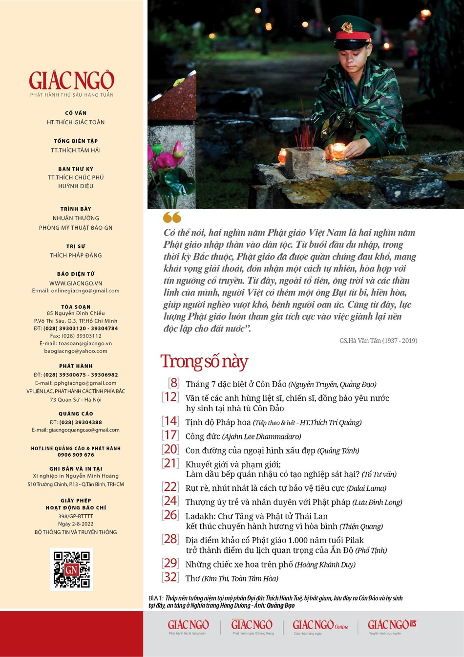 Mời bạn đọc cùng theo dõi bài viết "Tháng 7 đặc biệt ở Côn Đảo", tác giả Nguyện Truyền - Quảng Đạo đăng trên chuyên mục Điểm nhìn của báo Giác Ngộ số 1212 ra ngày 28-7.