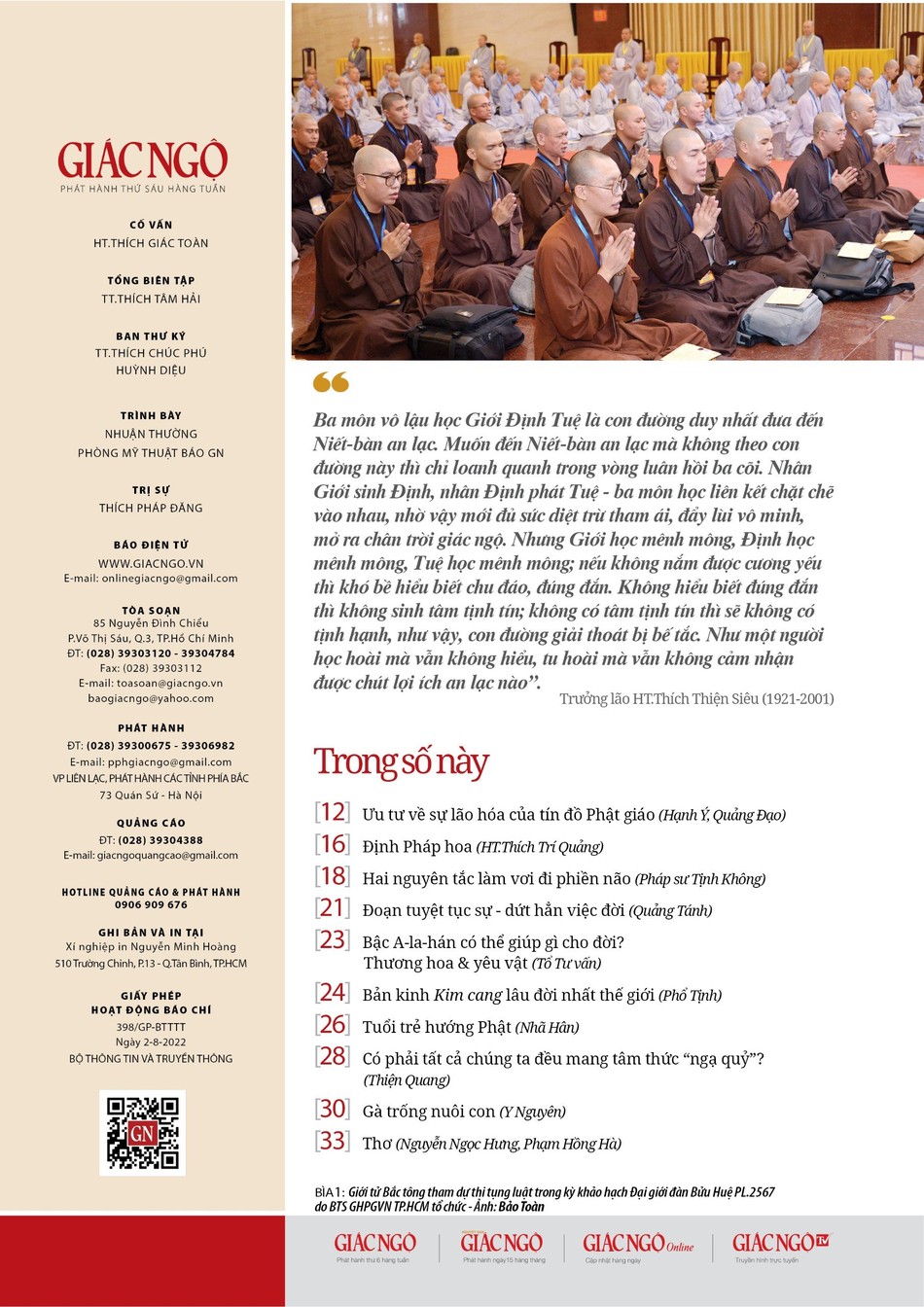 - Các chuyên mục khác: "Có phải tất cả chúng ta đều mang tâm thức 'ngạ quỷ'?" (Thiện Quang lược dịch); "Gà trống nuôi con" (Truyện ngắn Y Nguyên); Thơ của Nguyễn Ngọc Hưng, Phạm Hồng Hà cùng các tin tức Phật giáo trong tuần...