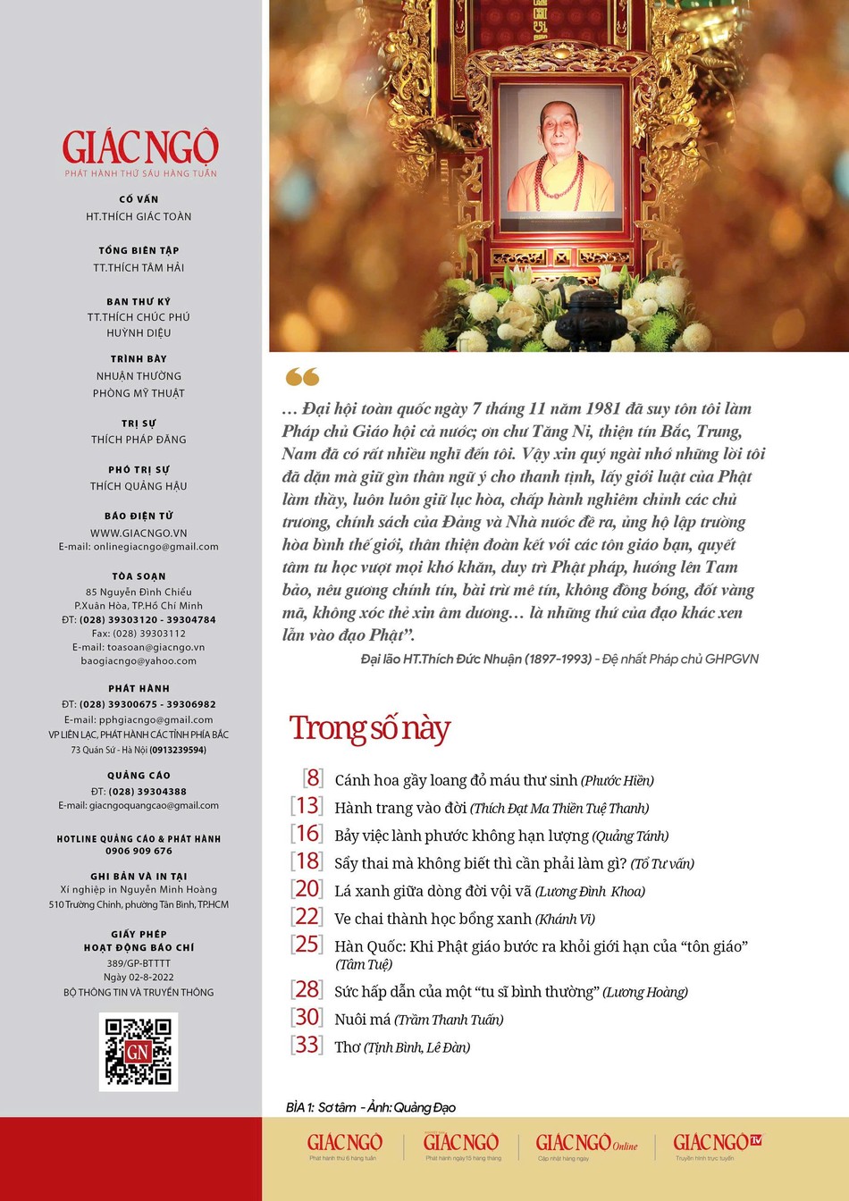 Bên cạnh đó, Báo Giác Ngộ tuần này còn có những nội dung sau: