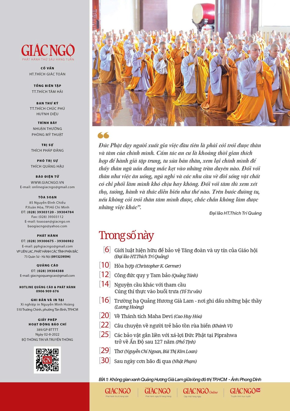 - Mục Văn hóa: Trường hạ Quảng Hương Già Lam - nơi ghi dấu những bậc thầy (Lương Hoàng); Về Thánh tích Maha Devi (Cao Huy Hóa).