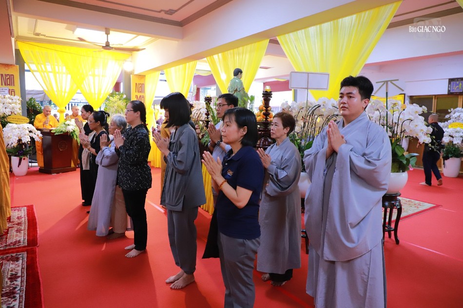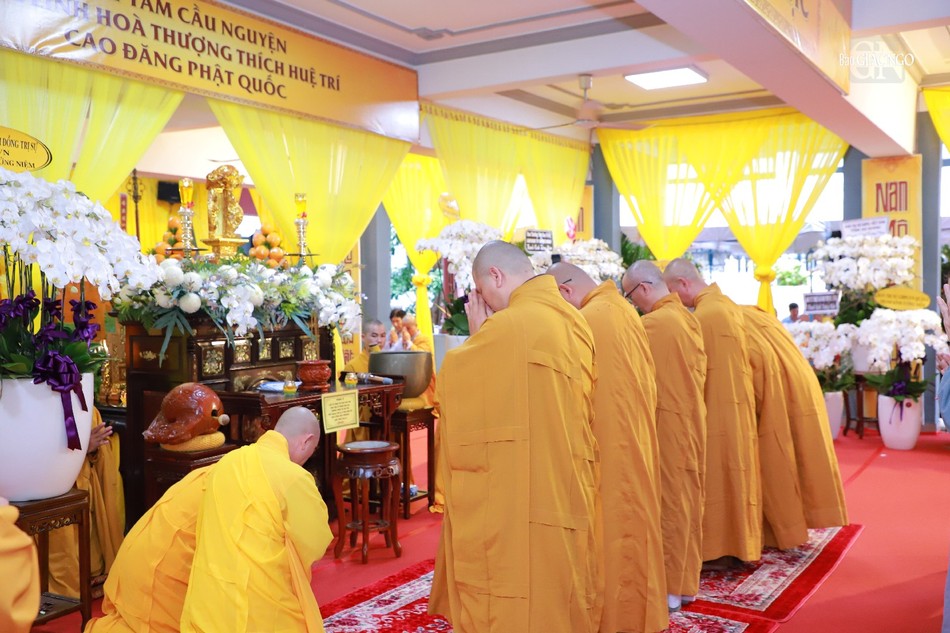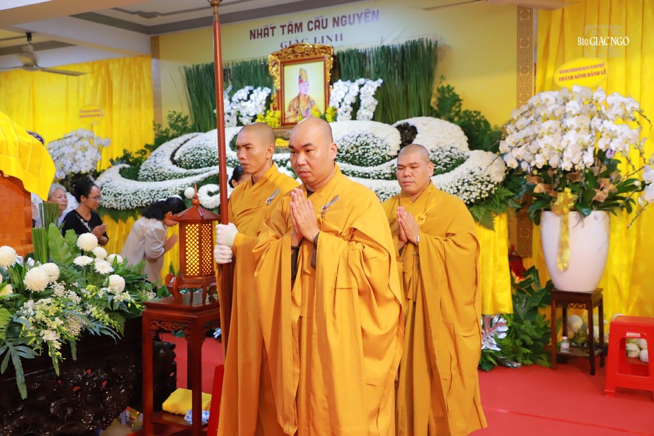 Sau đó, chư tôn đức, Phật tử đã thọ tâm tang, hữu nhiễu kim quan. Thượng tọa Thích Chúc Phú đại diện phái đoàn ghi sổ tang lưu niệm, phân ưu cùng Ban Tổ chức Lễ tang, sơn môn pháp phái và môn đồ pháp quyến.