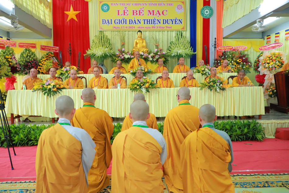 Lễ bế mạc kết thúc sau phát biểu cảm tạ của Thượng tọa Thích Huệ Đức, Phó Trưởng ban Trị sự GHPGVN tỉnh Bến Tre.