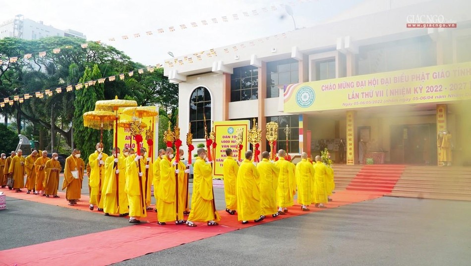 Sau nghi thức chào Quốc kỳ, Đạo kỳ, Ban Tổ chức Đại hội cung thỉnh Ban Chứng minh, Chủ tọa đoàn, Ban Thư ký, Ban Kiểm soát Đại hội; đại diện Ban Kiểm soát báo cáo số lượng và kiểm tra tư cách đại biểu tham dự đại hội.