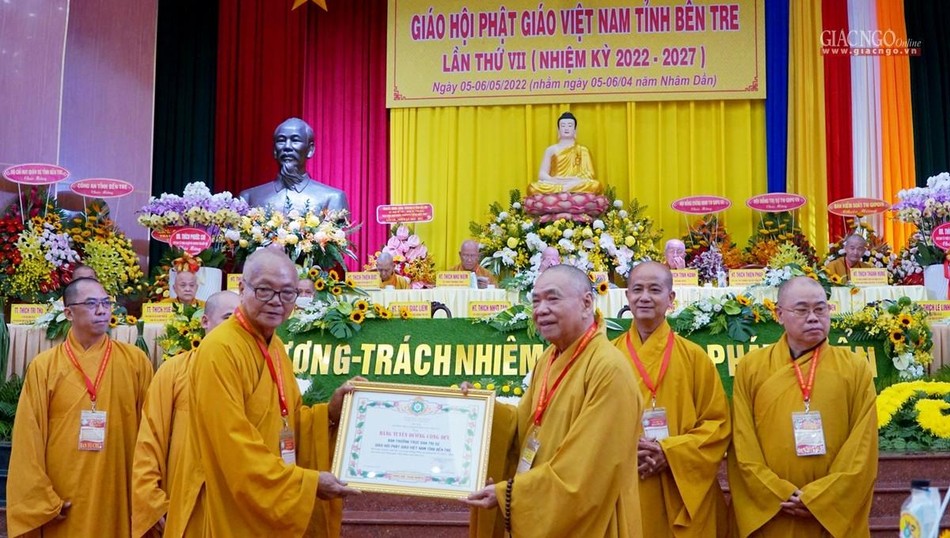 Thay mặt Ban Trị sự GHPGVN tỉnh Bến Tre nhiệm kỳ 2017-2022, Hòa thượng Thích Lệ Linh, Phó ban Thường trực Ban Trị sự khóa VI tuyên bố mãn nhiệm.