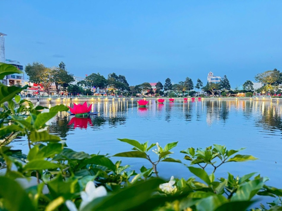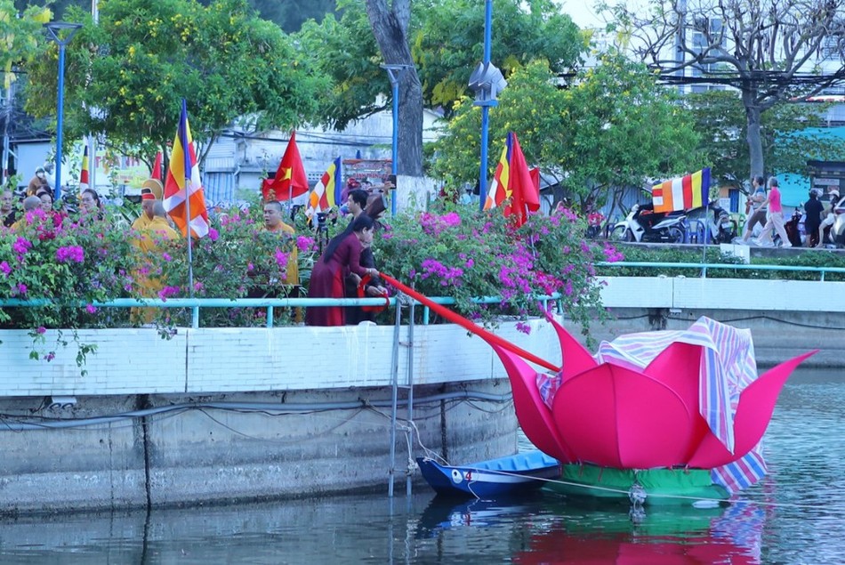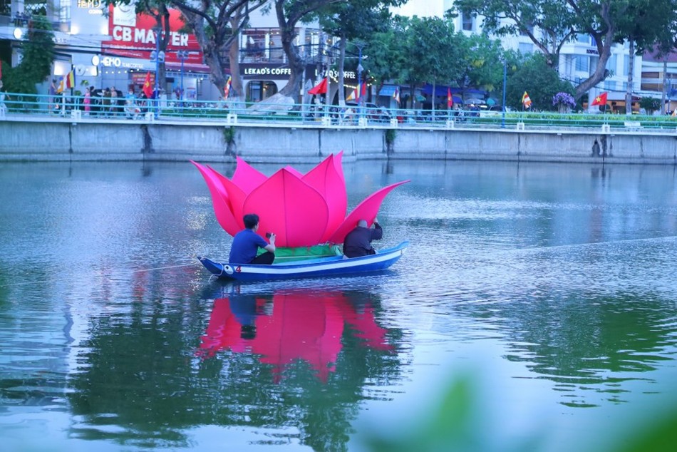 | Lần đầu tiên hạ thủy bảy đóa sen Kính mừng Đại lễ Phật đản trên hồ Trúc Giang |
