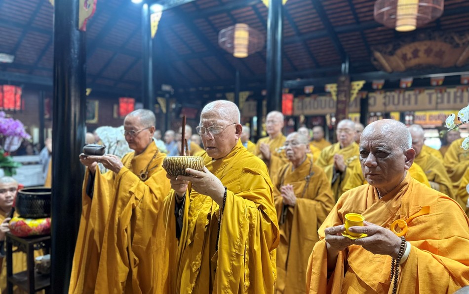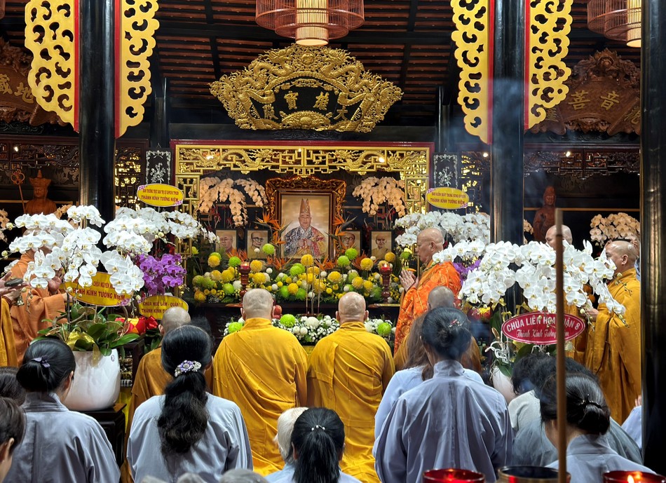 Dịp này, Thượng tọa cùng chư Tăng và Phật tử đã trang nghiêm tổ chức lễ tưởng niệm 10 năm Hòa thượng Thích Nhật Quang viên tịch, truy tiến chư hương linh, chẩn tế cầu nguyện âm siêu dương thái nhân dịp tiết tháng Bảy - Vu lan thắng hội.