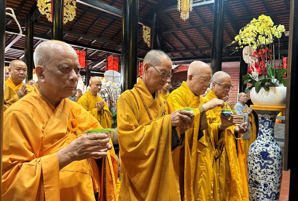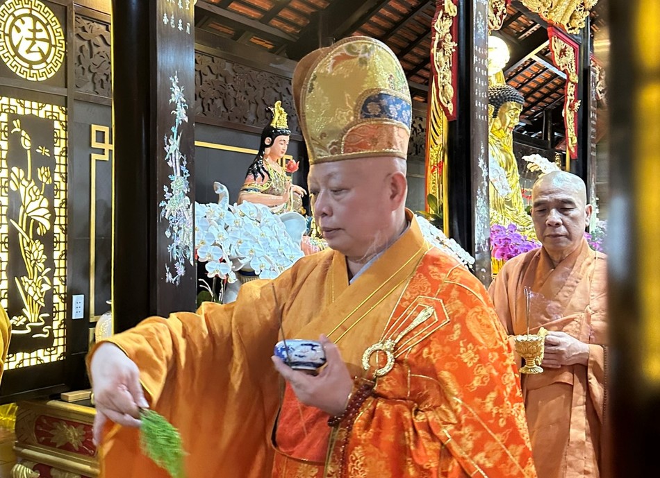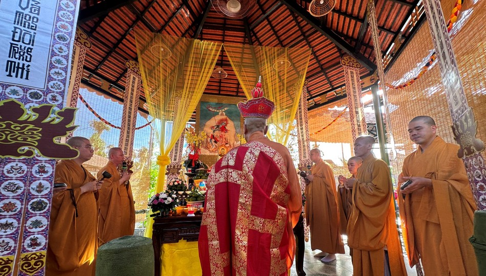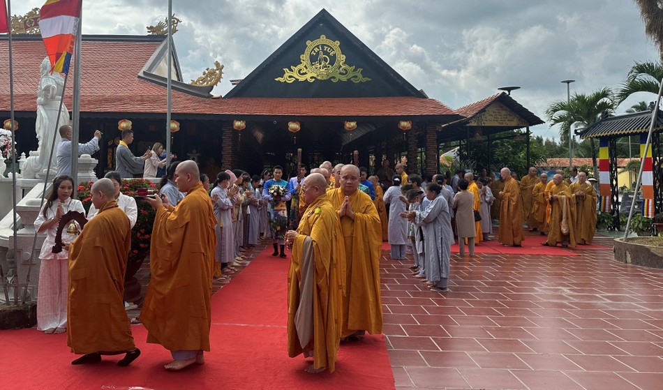 Hòa thượng Thích Lệ Trang, Trưởng ban Nghi lễ T.Ư, Trưởng ban Trị sự GHPGVN TP.HCM quang lâm cử hành lễ sái tịnh già-lam, thỉnh Phật an vị và khai kinh; Tham dự cầu nguyện còn có chư tôn đức Tăng Ni Ban Thường trực Ban Trị sự GHPGVN TP.HCM, tỉnh Bến Tre và các tỉnh lân cận.