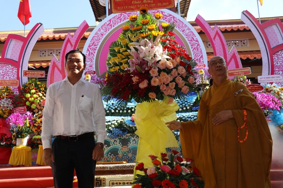 Nhân dịp này, các cấp chính quyền đã gửi đến buổi lễ những lẵng hoa tươi thắm, thể hiện sự trân trọng, gắn bó và đồng hành trong tinh thần “Đạo pháp – Dân tộc – Chủ nghĩa xã hội”.