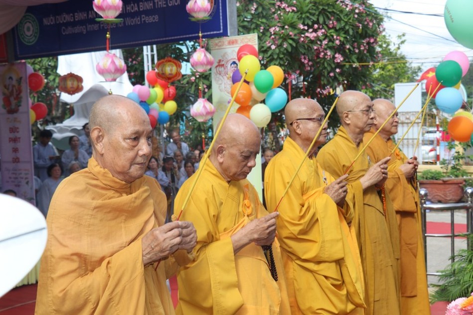 Trước đó, sáng cùng ngày, chư tôn thiền đức Thường trực Ban Trị sự GHPGVN tỉnh đã tổ chức lễ dâng hương tưởng niệm, đặt vòng hoa kính viếng đến các anh hùng liệt sỹ tại Nghĩa trang H.Bình Đại, nhân kỷ niệm 50 năm ngày Giải phóng miền Nam, thống nhất đất nước.