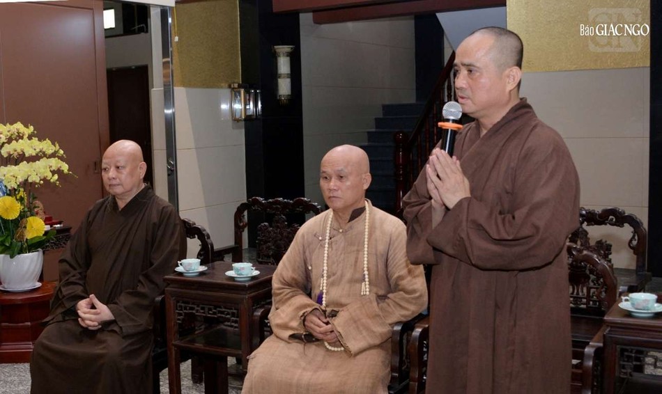 Hiện diện cùng đón tiếp đoàn, có Hòa thượng Thích Lệ Trang, Phó Chủ tịch Hội đồng Trị sự, Trưởng ban Trị sự GHPGVN TP.HCM, Phụ tá Đức Pháp chủ; Thượng tọa Thích Giác Dũng, Ủy viên Hội đồng Trị sự, Phó Viện trưởng Học viện Phật giáo VN tại TP.HCM, Thư ký Văn phòng Đức Pháp chủ; Thượng tọa Thích Tâm Hải, Ủy viên Hội đồng Trị sự, Tổng Biên tập Báo Giác Ngộ, Thư ký báo chí Văn phòng Đức Pháp chủ.