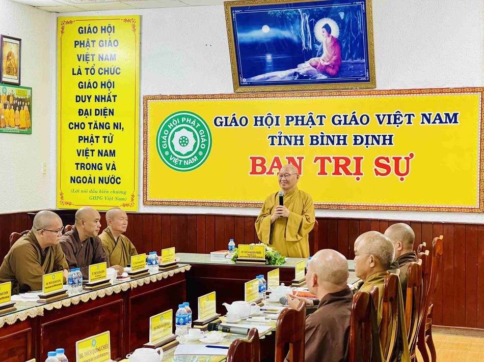 Cuộc họp dưới sự chủ tọa của Hòa thượng Thích Nguyên Phước, Ủy viên Thường trực Hội đồng Trị sự, Trưởng ban Trị sự kiêm Trưởng ban Tăng sự GHPGVN tỉnh Bình Định cùng chư tôn đức Ban Thường trực.