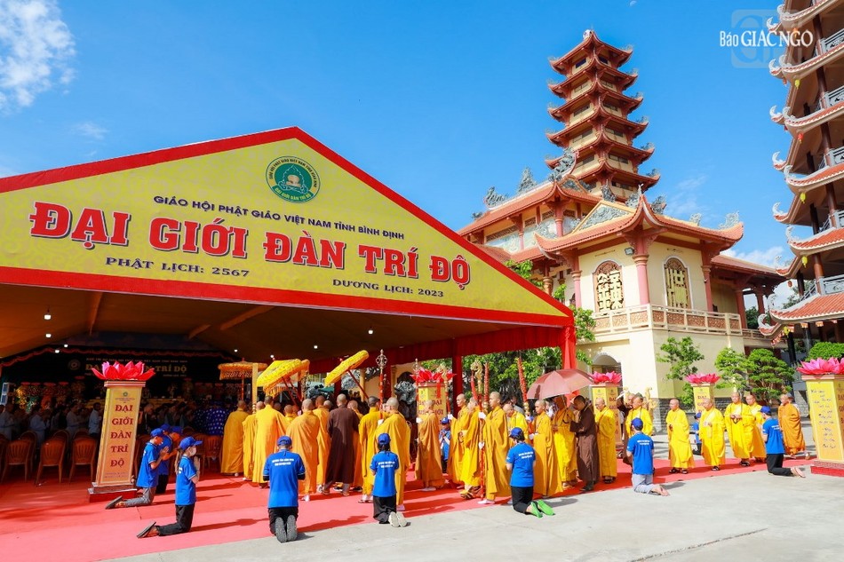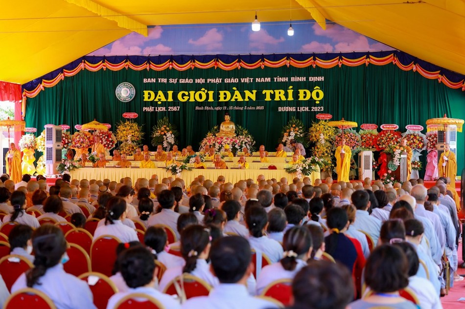 Báo cáo tiến trình công tác tổ chức Đại giới đàn, Ban Kiến đàn cho biết Đại giới đàn Trí Độ do Ban Trị sự GHPGVN tỉnh Bình Định tổ chức từ ngày 11-5-2023 đến ngày 15-5-2023 (22-3 đến 26-3-Quý Mão), đàn giới Tăng tại tổ đình Long Khánh (TP.Quy Nhơn) và đàn giới Ni tại chùa Tâm Ấn (TP.Quy Nhơn).