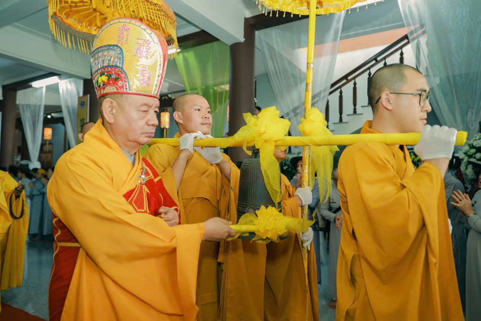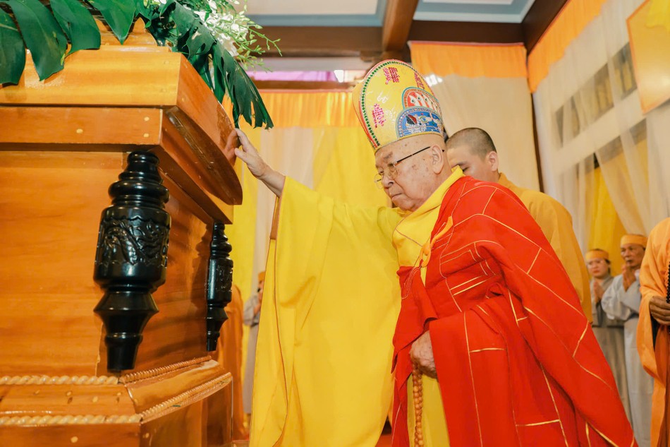 Sau lễ tưởng niệm là nghi thức tâm linh phụng tống kim quan do Thượng tọa sám chủ Thích Đồng Thành cùng chư tôn đức Ban Kinh sư cử hành.