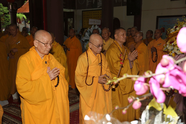 Chư tôn đức đã ôn lại quá trình hình thành ngôi tổ đình với công hạnh cao cả của Hòa thượng Tổ sư khai sơn, đại chúng Tăng Ni và Phật tử lắng nghe Hòa thượng viện chủ tổ đình Minh Tịnh cung tuyên sơ lược tiểu sử của Hòa thượng Tổ sư.