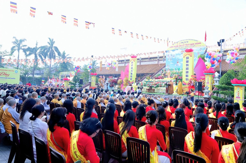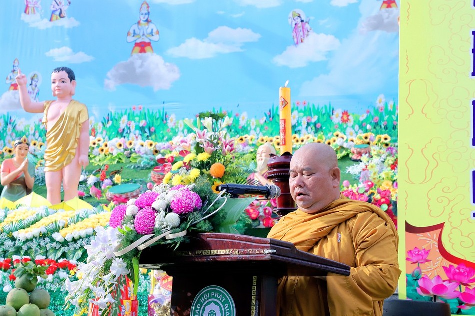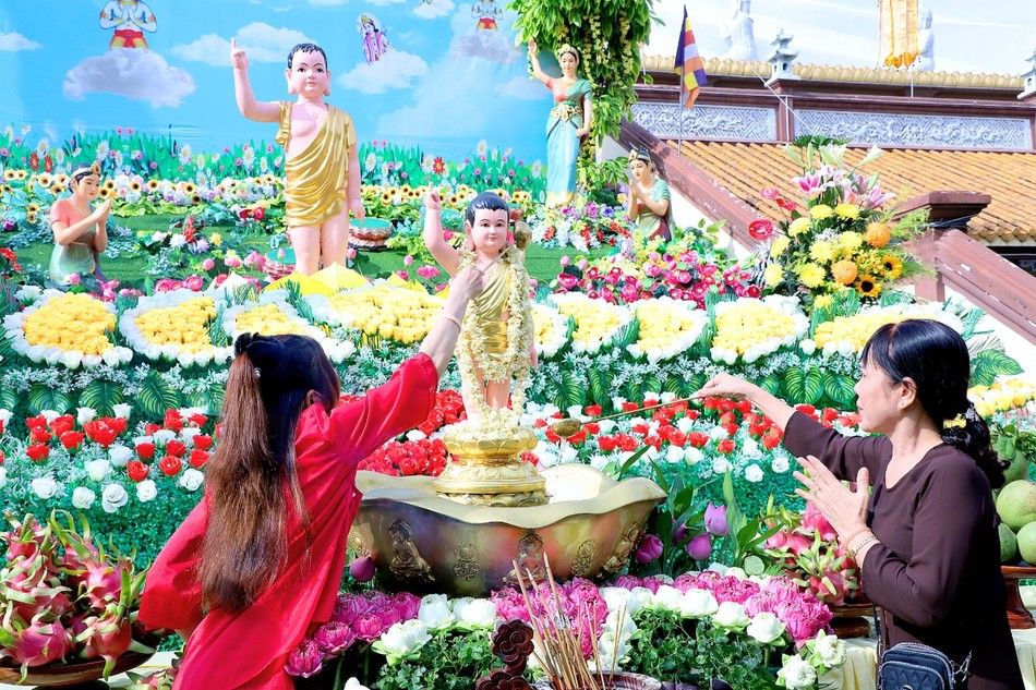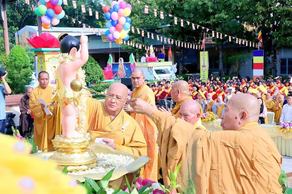 Sau 3 hồi chuông trống Bát-nhã, chư tôn đức Tăng Ni, lãnh đạo chính quyền các cấp cùng thiện nam tín nữ Phật tử đã niêm hương bạch Phật, cử hành lễ Khánh đản, lễ Mộc dục theo nghi thức truyền thống và thả bóng bay, chim bồ câu để cầu nguyện thế giới hòa bình, chúng sinh an lạc.