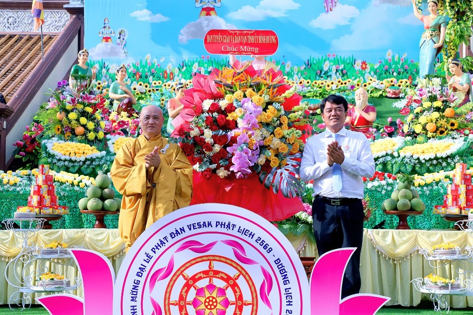 Phát biểu tại buổi lễ, ông Bùi Thanh Nhân, Ủy viên Ban Thường vụ Tỉnh ủy, Trưởng ban Tuyên giáo và Dân vận Tỉnh ủy Bình Dương ghi nhận, đánh giá rất cao những kết quả hoạt động Phật sự trong thời gian qua. Ông mong rằng trong thời gian tới, chư tôn đức Tăng Ni và đồng bào Phật tử tiếp tục phát huy truyền thống "hộ quốc an dân", thể hiện vai trò, uy tín của mình trong việc tăng cường xây dựng khối đại đoàn kết toàn dân, đoàn kết các tôn giáo, góp phần đưa tỉnh nhà phát triển nhanh, bền vững và toàn diện.