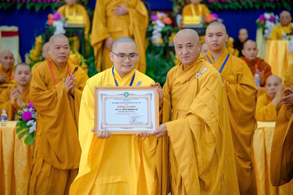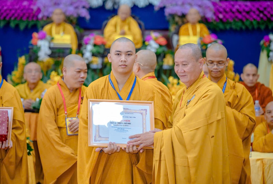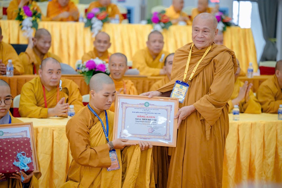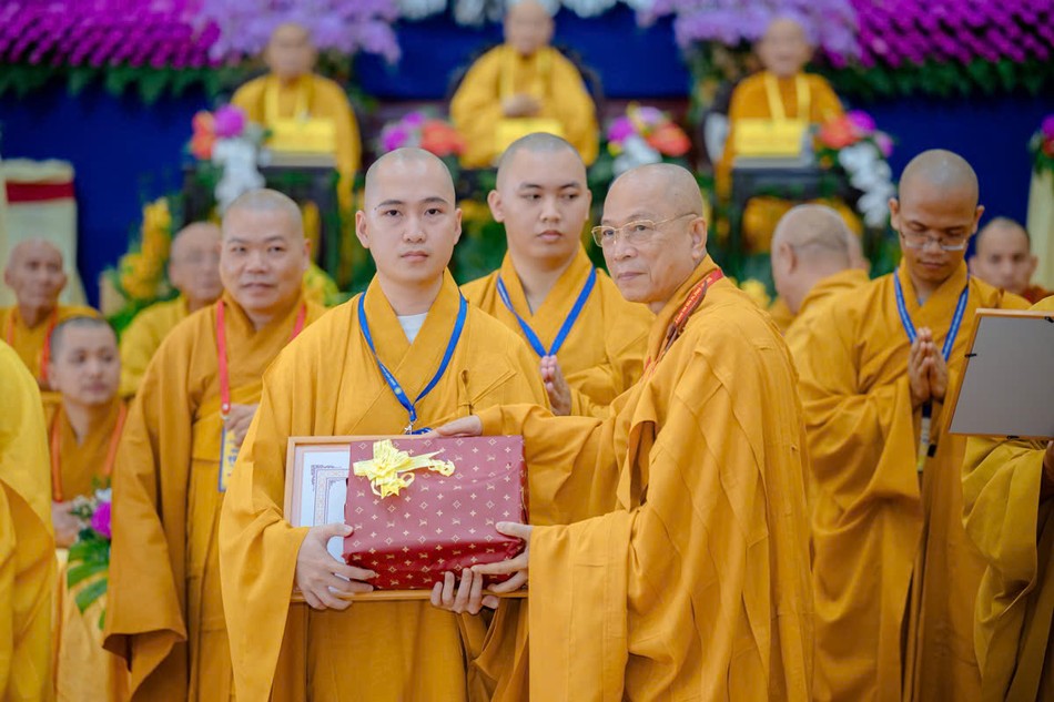 Trưởng lão Hòa thượng Thích Thiện Nhơn, Phó Pháp chủ Hội đồng Chứng minh, Chủ tịch Hội đồng Trị sự GHPGVN, Trưởng ban Tăng sự T.Ư chứng minh lễ bế mạc và sách tấn giới tử sau khi thọ giới.