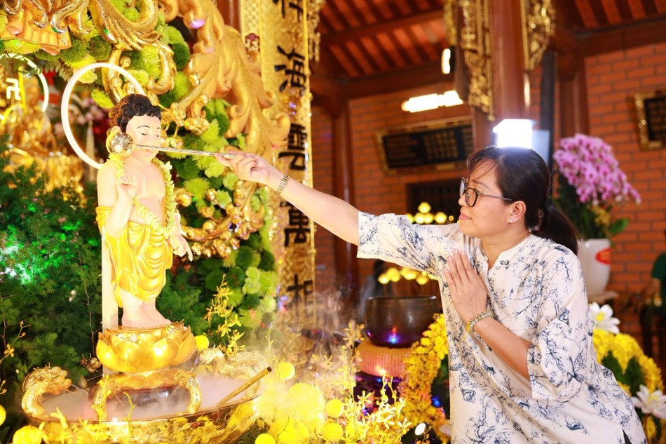 GNO - Hòa trong không khí hân hoan kính mừng Đại lễ Phật đản Phật lịch 2569, tối 5-5, chùa Thiên Quang (P.Đông Hòa, TP.Dĩ An, Bình Dương) đã trang nghiêm tổ chức Lễ tắm Phật, thắp hoa đăng cầu nguyện với sự tham dự của đông đảo Phật tử gần xa.