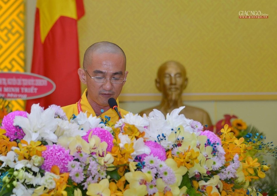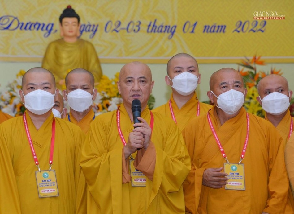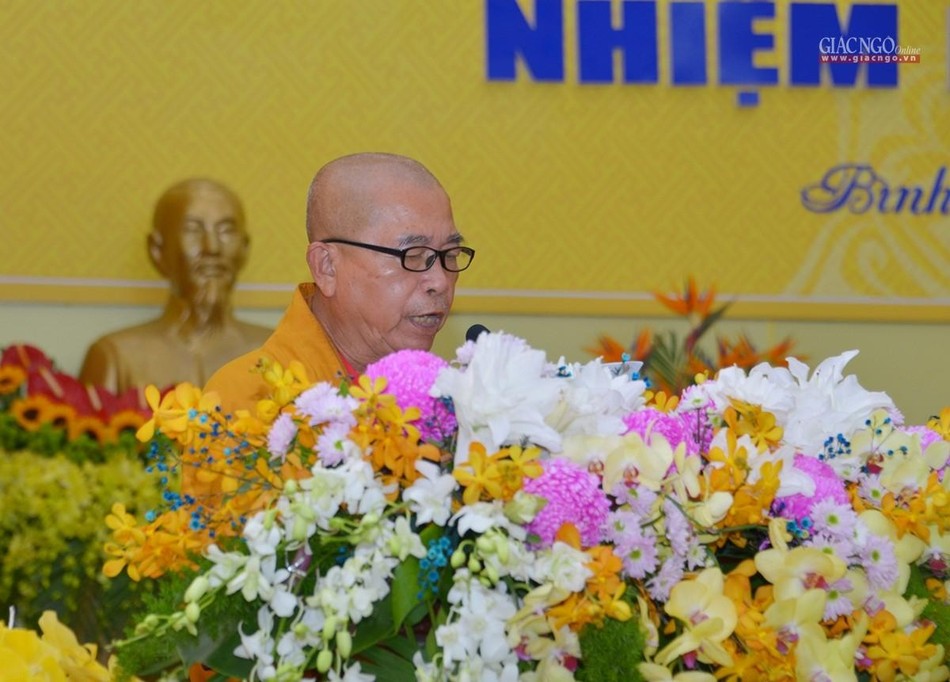 "Ban Trị sự Phật giáo Bình Dương sẽ cố gắng tận tâm, tận lực phát huy tối đa những thuận lợi và cơ hội đang có được để tập trung vào mục đích hoằng pháp lợi sanh, hoàn thành sứ mạng mà Giáo hội giao phó và niềm tin của toàn thể Tăng Ni, tín đồ Phật giáo. Nhân đây, chúng tôi tha thiết mong mỏi toàn thể Tăng Ni, tín đồ Phật giáo Bình Dương luôn thể hiện quyết tâm cao nhất để vượt qua những nguy cơ thách thức trong bối cảnh thời đại, ra sức nỗ lực tu hành, trau dồi đạo hạnh, trên tinh thần tĩnh thức, tự giác, hoằng pháp lợi sanh, góp phần thiết thực vào sự nghiệp phát triển Giáo hội, xương minh Phật pháp", Hòa thượng Trưởng ban Tổ chức Đại hội nhấn mạnh.