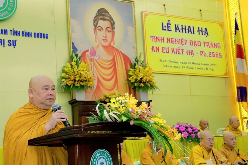 “An cư là trách nhiệm và bổn phận, chư Tăng Ni lấy việc tu trì gìn giữ giới luật, thanh quy làm chính để thúc liễm thân tâm, củng cố và duy trì nguồn nội lực sau những ngày tháng dấn thân phụng sự Đạo pháp và chúng sinh. Đây cũng là duyên lành để chư Tăng Ni cùng nhau sách tấn, tiến tu và là dịp được gần gũi các vị tôn túc để được sách tấn tu học, làm nơi nương tựa cho hàng Phật tử tại gia.”, Hòa thượng Trưởng ban Trị sự GHPGVN tỉnh Bình Dương nhấn mạnh.