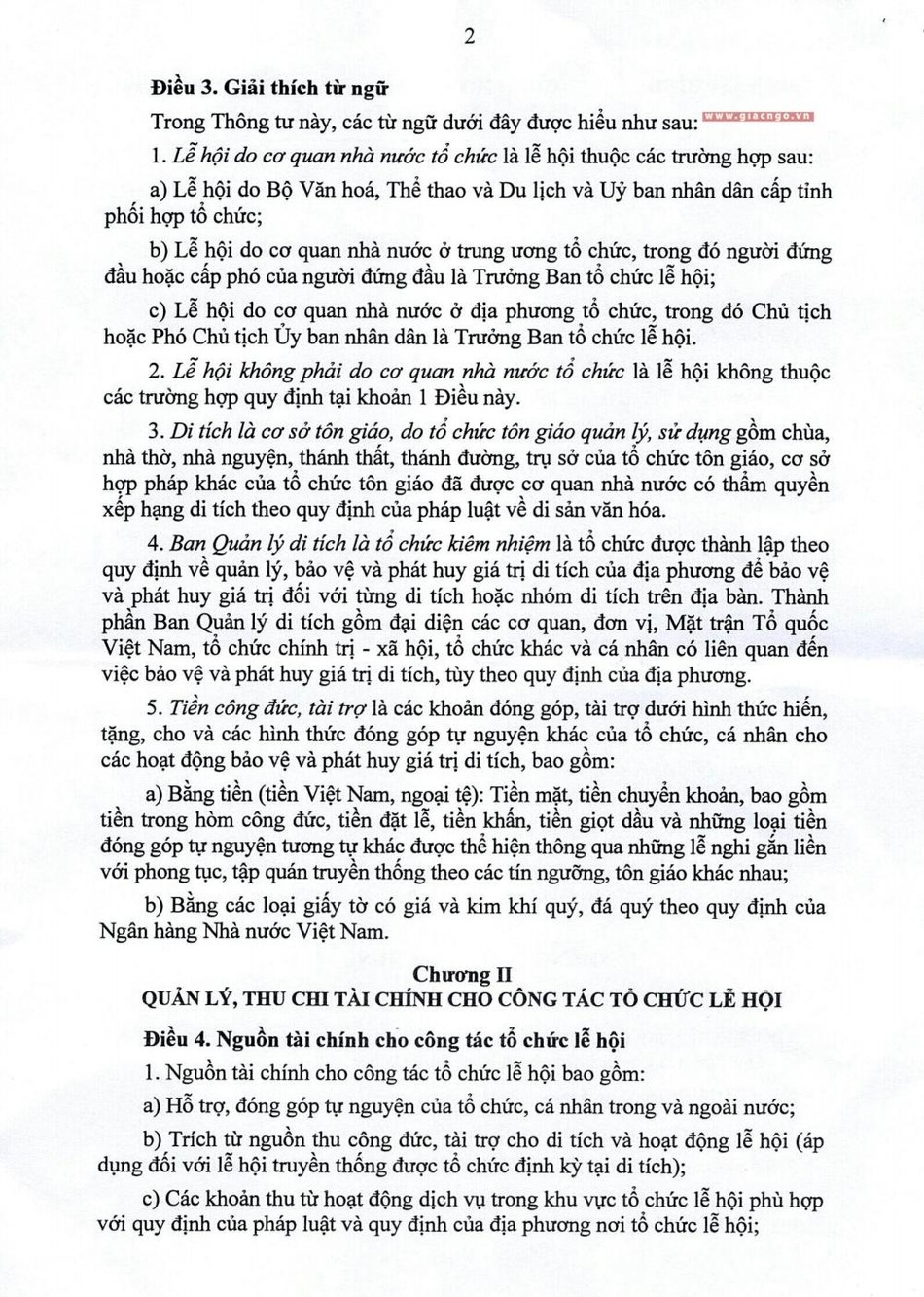 GNO - Công văn số 2838 BTC-HCSN của Bộ Tài chính, do Thứ trưởng Võ Thành Hưng ký ngày 29-3-2022 về việc lấy ý kiến dự thảo Thông tư hướng dẫn quản lý, thu chi đối với lễ hội và di tích (lần 3), gởi đến Hội đồng Trị sự GHPGVN.