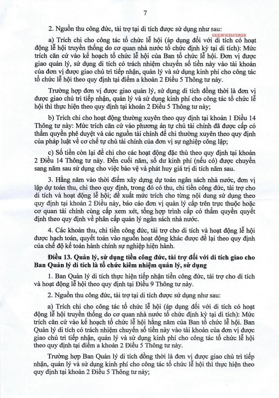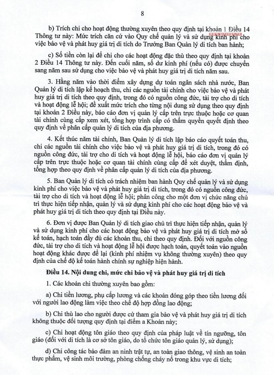 Dự thảo Thông tư hướng dẫn quản lý, thu chi đối với lễ hội và di tích