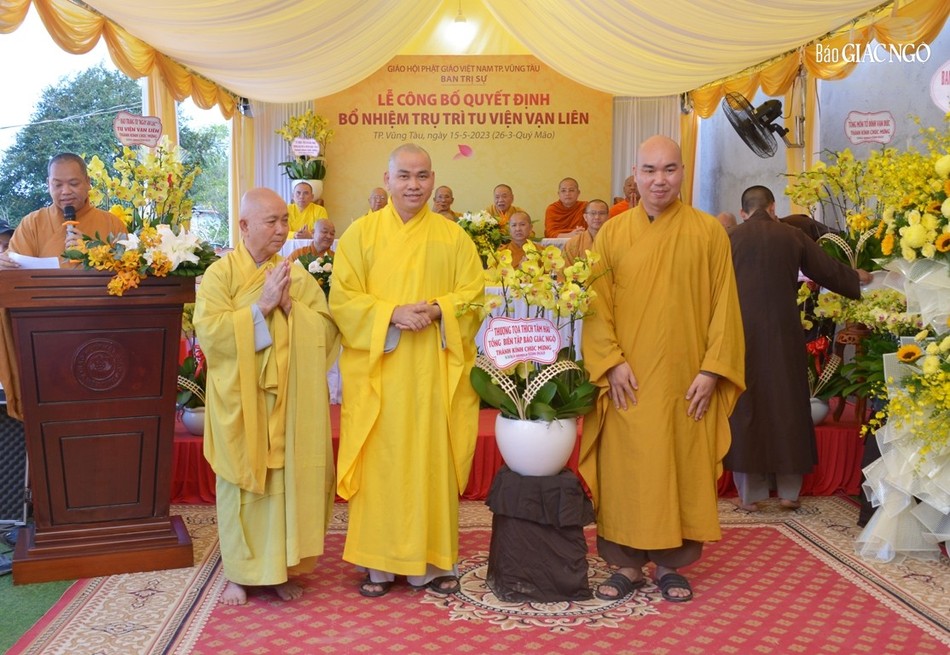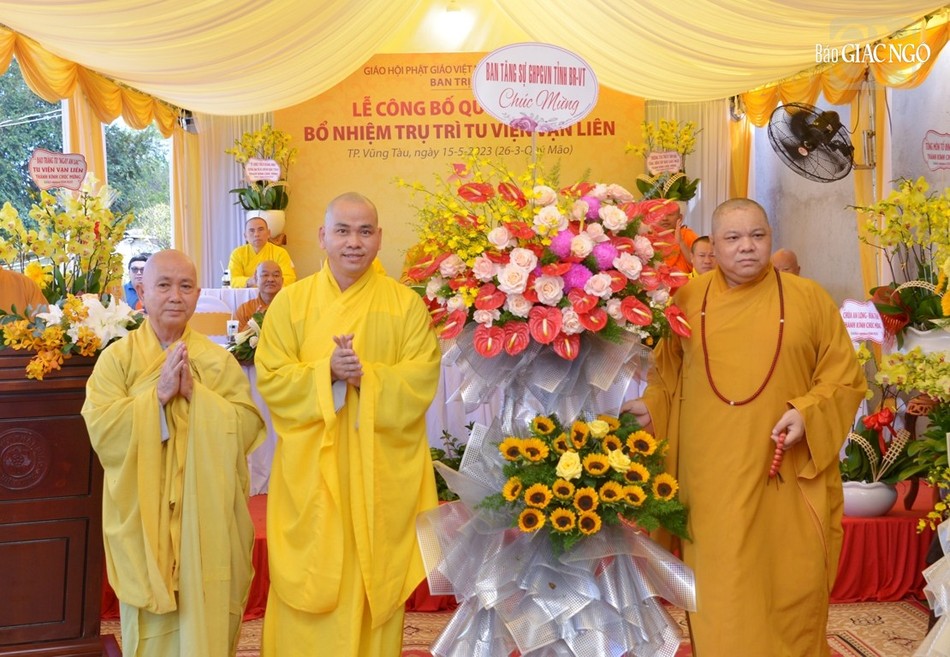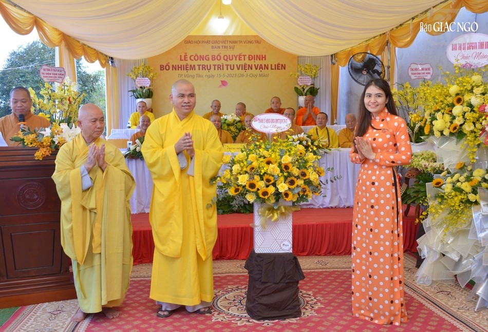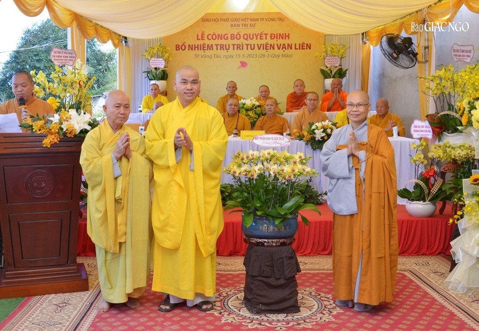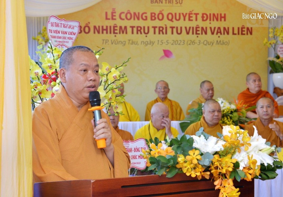 Tại buổi lễ, Thượng tọa Thích Thiện Thông, Phó Thư ký kiêm Chánh Văn phòng Ban Trị sự GHPGVN tỉnh Bà Rịa - Vũng Tàu, Phó ban Thường trực Ban Trị sự GHPGVN TP.Vũng Tàu phát biểu khai mạc và đọc quyết định bổ nhiệm Hòa thượng Thích Hoằng Tri (thế danh Lê Anh Tiến, sinh năm 1952) chính thức trụ trì tu viện Vạn Liên, địa chỉ số 22/6 Hạ Long, phường 2, TP.Vũng Tàu.