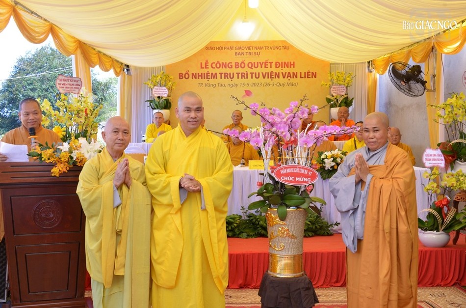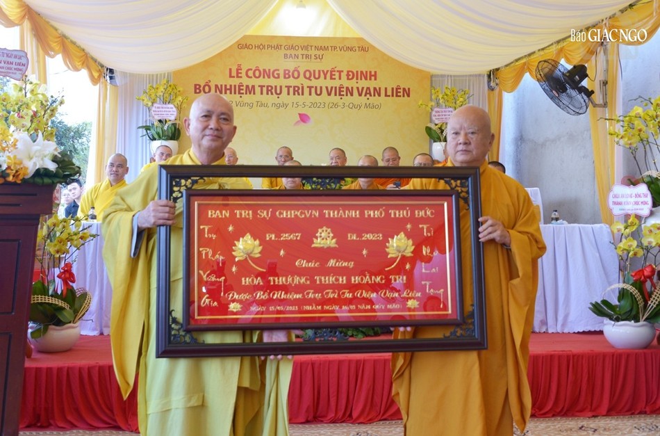 GNO - Sáng nay, 15-5 (26-3-Quý Mão), Ban Trị sự GHPGVN TP.Vũng Tàu đã công bố quyết định bổ nhiệm Hòa thượng Thích Hoằng Tri, trụ trì tu viện Vạn Liên (phường 2, TP.Vũng Tàu).