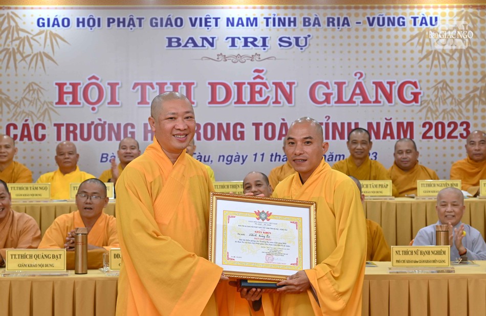 Ban Tổ chức hội thi diễn giảng do Ban Hoằng pháp tỉnh tổ chức với sự chỉ đạo của Hòa thượng Thích Huệ Trí, Phó Chủ tịch Hội đồng Trị sự, Trưởng ban Trị sự GHPGVN tỉnh BR-VT.