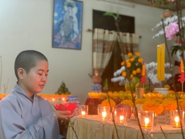 Chùa Linh Quang, do Ni sư Thích nữ Như Hạnh hướng dẫn nam nữ Phật tử đạo tràng tụng kinh Dược sư đầu năm.
