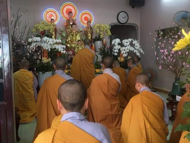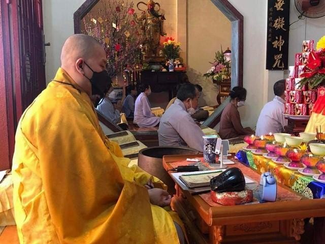 Chùa Quan Âm Các, Đại đức Thích Thiền Lý hướng dẫn nam nữ đạo tràng Phật tử tụng kinh Dược sư cầu nguyện bình an đầu năm.