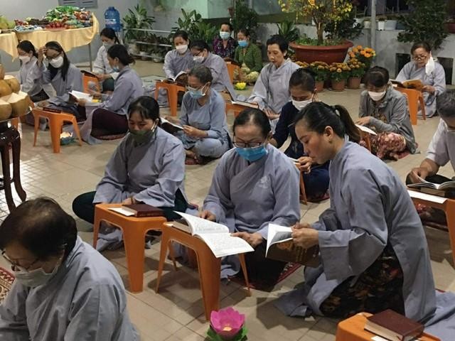 Chùa Hải Vân, do Sư cô Thích nữ Huệ Trí hướng dẫn nam nữ Phật tử đạo tràng trì tụng kinh Dược sư.