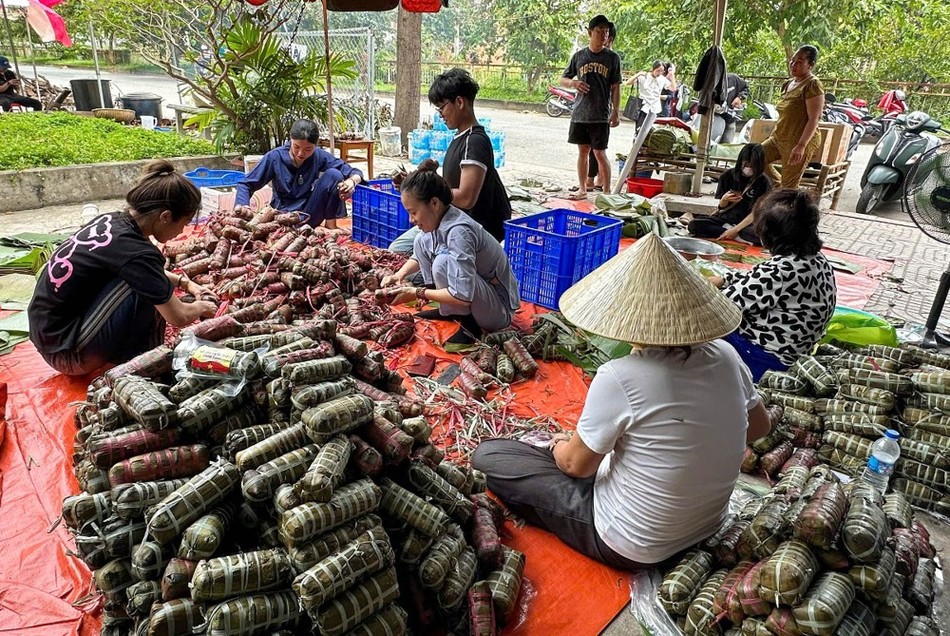 Hàng trăm Phật tử trẻ, tình nguyện viên và người dân nơi đây, với tấm lòng nhiệt thành chung tay gói hàng ngàn đòn bánh tét gửi đến đồng bào miền Bắc yêu thương. Những chiếc bánh không chỉ là lương thực cứu trợ mà còn là biểu tượng của tình người, của sự gắn kết Bắc - Nam trong những lúc gian khó nhất.