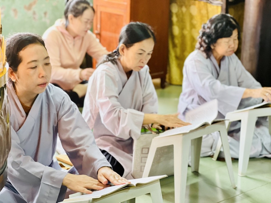 Sau nghi thức niêm hương bạch Phật, Thượng tọa trụ trì đã niêm hương sái tịnh đàn tràng, khai đàn trì kinh Dược Sư để từ nguyện lực vô song của Đức Phật Dược Sư cầu nguyện đạo pháp xương minh, mưa thuận gió hòa, dịch bệnh tiêu trừ, thế giới hòa bình, chúng sinh an lạc.