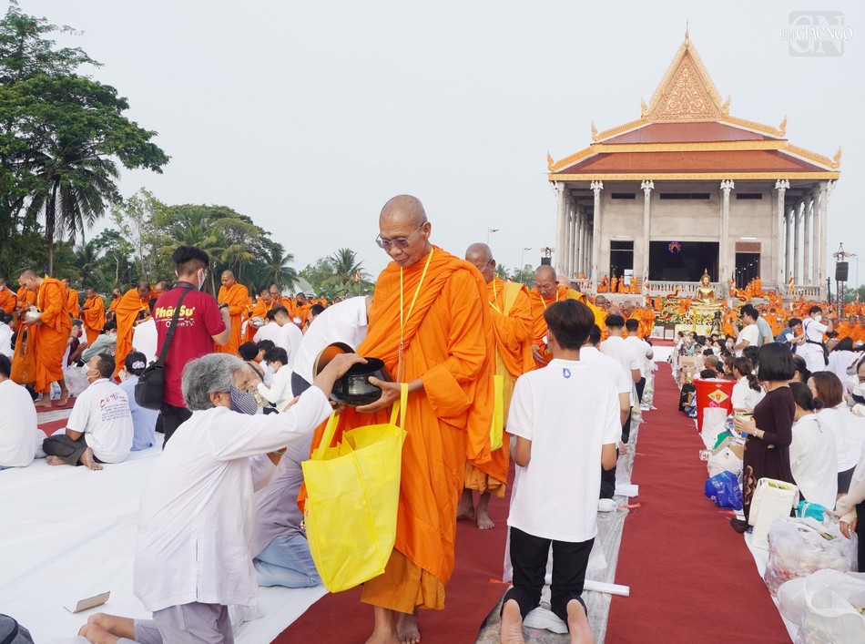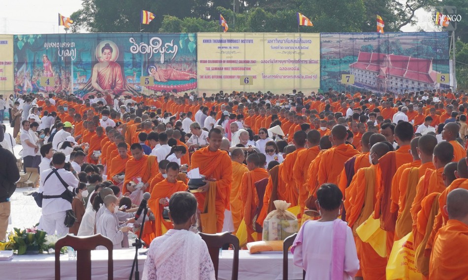 GNO - Chào mừng Đại lễ Phật đản - Vesak Phật lịch 2567 và khánh thành trai đường Học viện Phật giáo Nam tông Khmer tại TP.Cần Thơ, vào sáng nay 26-4, Học viện đã tổ chức lễ đặt bát hội cúng dường 3.000 vị chư Tăng Nam tông đến từ nhiều quốc gia trong khu vực châu Á.