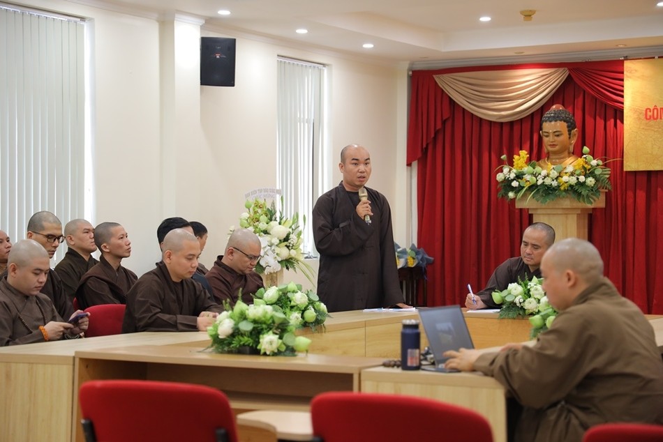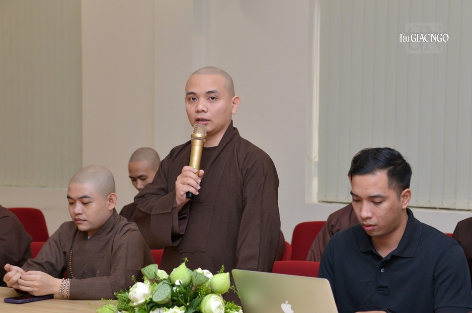 Trong phần thảo luận, chư tôn đức, các anh chị cộng tác viên đã có những đóng góp, chia sẻ xoay quanh các vấn đề truyền thông Phật giáo, những trăn trở khó khăn khi tác nghiệp tại địa phương, ưu tư về phương tiện truyền thông của giới trẻ trên mạng xã hội, nêu lên những thắc mắc về cộng tác bài tin với toà soạn, kỳ vọng sự kết nối đổi mới hiệu quả trong lĩnh vực thông tin truyền thông.