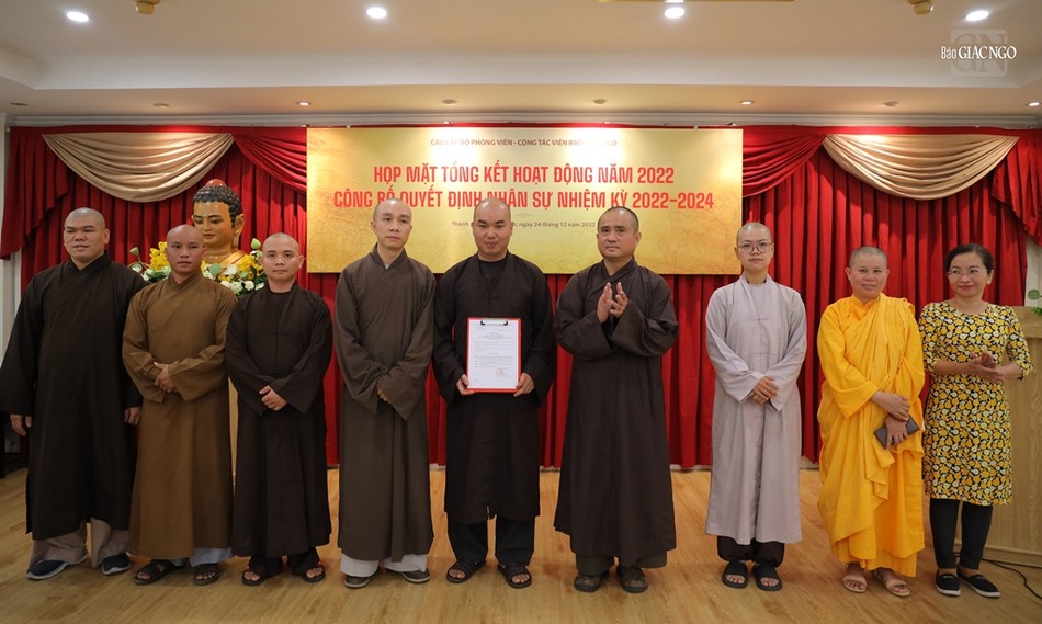 GNO - Sáng 24-12 , Câu lạc bộ Phóng viên - Cộng tác viên Báo Giác Ngộ tổ chức buổi họp mặt tổng kết chương trình hoạt động năm 2022 và công bố quyết định nhân sự nhiệm kỳ mới 2022-2024 tại tòa soạn Báo Giác Ngộ (85 Nguyễn Đình Chiểu, quận 3, TP.HCM) .
