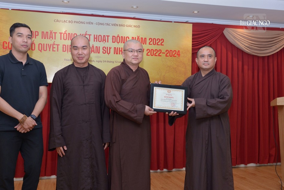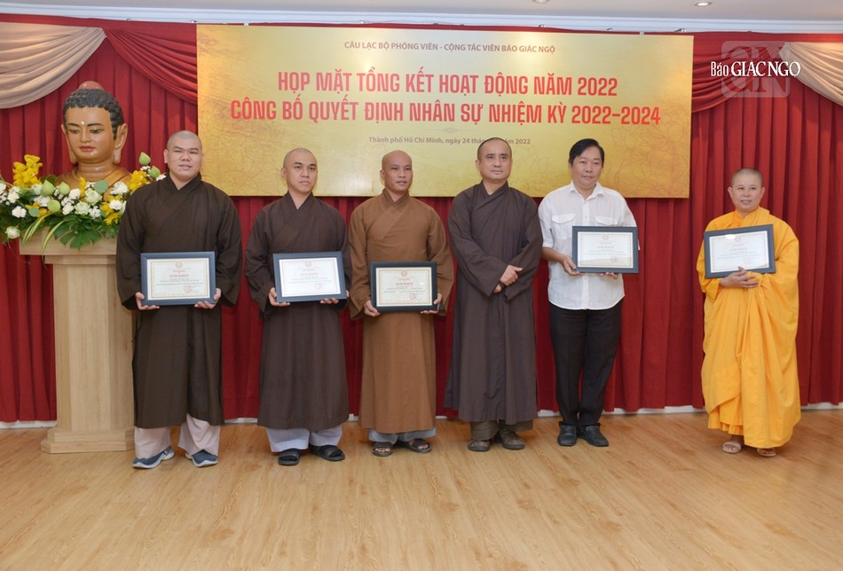 Dịp này, Ban Biên tập đã trao quyết định chuẩn y thành phần nhân sự Câu lạc bộ Phóng viên - Cộng tác viên Báo Giác Ngộ nhiệm kỳ 2022-2024, gồm 9 thành viên: Đại đức Thích Quảng Hậu, Chủ nhiệm; Đại đức Thích Nguyện Truyền, Phó Chủ nhiệm; Đại đức Thích Nguyên Tài, Thư ký; Cư sĩ Huỳnh Bích Đào, Phó Thư ký và các Ủy viên: Đại đức Thích Quảng An, Đại đức Thích Thiện Trí, Đại đức Thích Quảng Thiện, Sư cô Thích nữ Huệ Như (kiêm Thủ quỹ), Sư cô Thích nữ Liên Duyên.