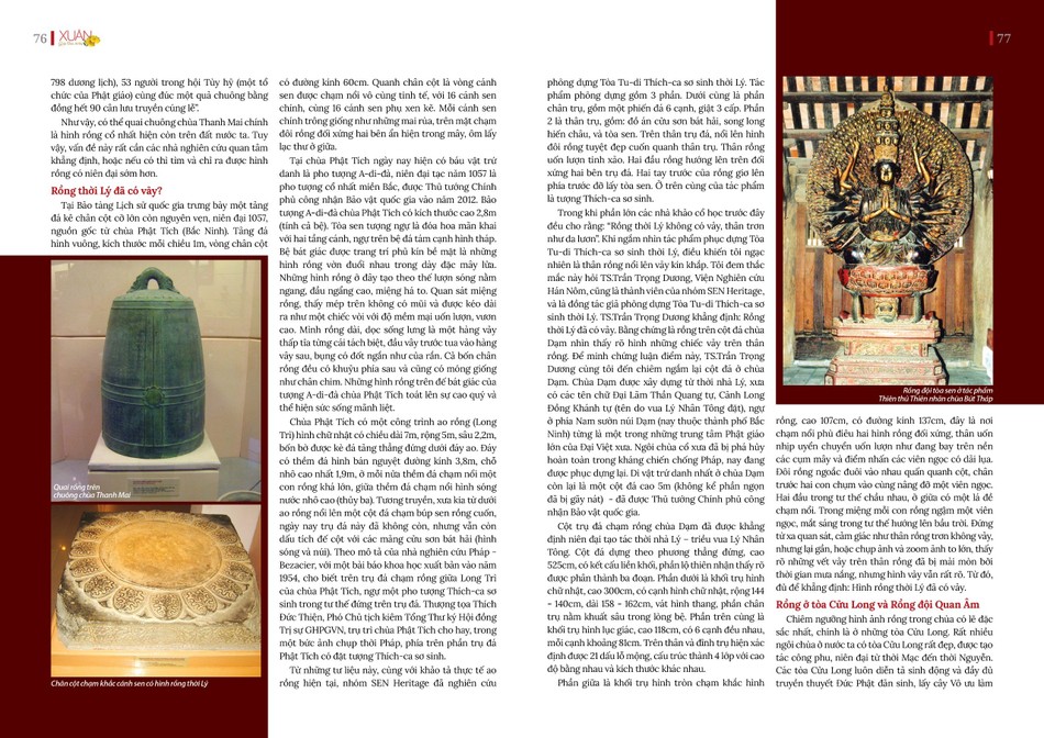 Lâu nay, rất nhiều nhà nghiên cứu khảo cổ đã viết về rồng, phần lớn đều cho rằng rồng thời Lý thân trơn như lươn, chưa có vảy, rồng thời Trần trở đi mới bắt đầu xuất hiện vảy. Thế nhưng thực tế quan sát của chúng tôi, thấy nhiều hình rồng của Phật giáo thời Lý đã có vảy.
