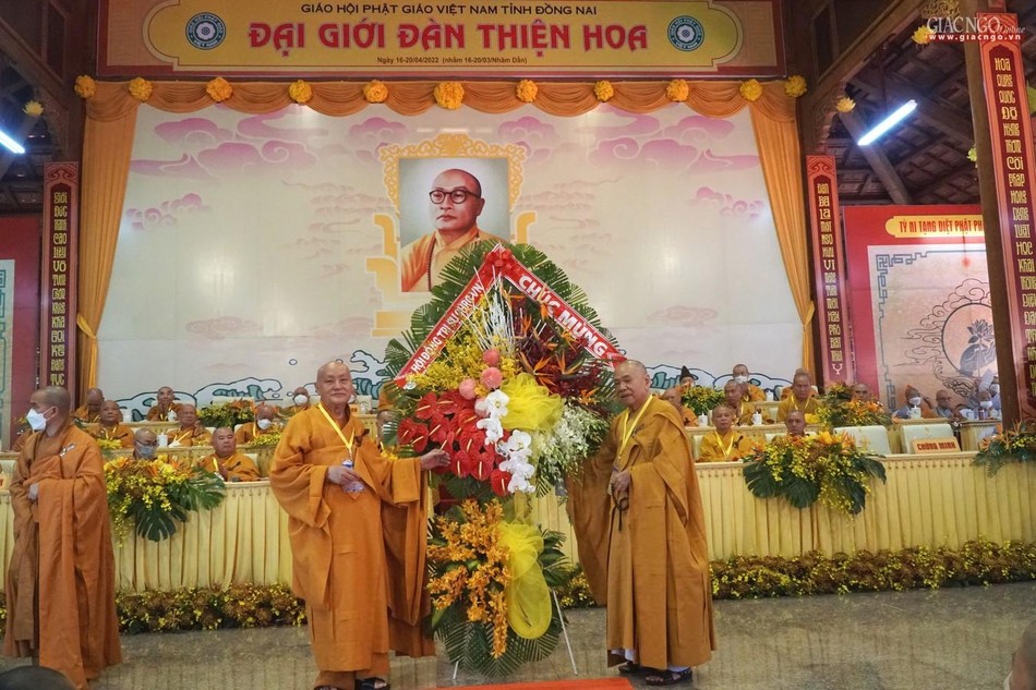 Dịp này, có nhiều lẵng hoa và quà của các cấp Giáo hội và cơ quan ban ngành gửi đến khánh thọ Trưởng lão Hòa thượng Thích Thanh Từ, Phó Pháp chủ GHPGVN và chúc mừng Đại giới đàn Thiện Hoa thành công viên mãn.