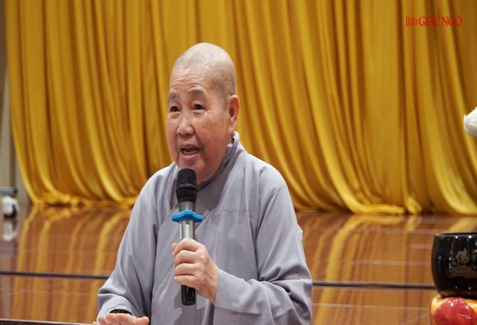 Ni trưởng Thích nữ Tắc Sen cảm ơn sự đóng góp của Ban Tổ chức