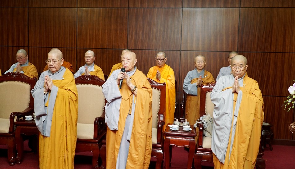 Ni trưởng Thích nữ Tịnh Nguyện đã ban đạo từ hoan hỷ, ghi nhận sự quan tâm của chư Ni trưởng, Ni sư, Sư cô trong Phân ban Ni giới T.Ư và TP.HCM bên thềm Xuân Ất Tỵ.