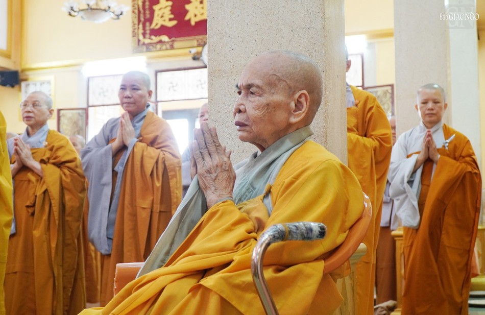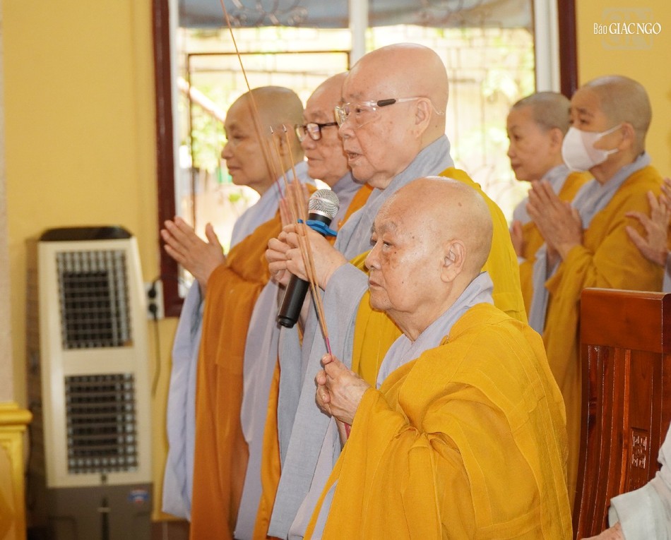 Buổi lễ trang nghiêm với nghi thức lễ Tổ, niêm hương bạch Phật, chư Ni cử hành lễ sám hối và thực hiện tác pháp Tự tứ.