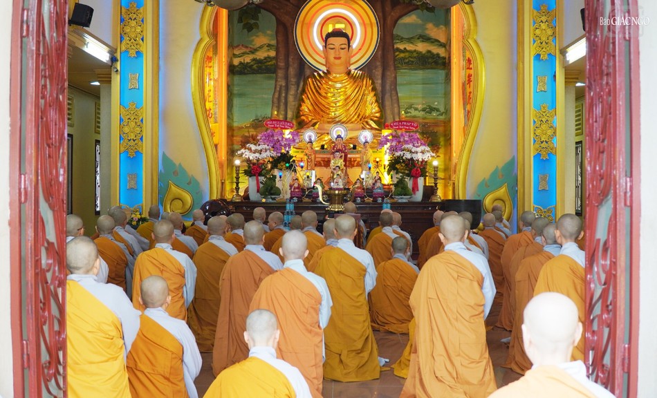 GNO - Tại trường hạ chùa Từ Nghiêm (Q.10, TP.HCM), sáng 16-7-Quý Mão (31-8-2023), chư hành giả an cư trang nghiêm cử hành nghi thức tác pháp Tự tứ, kết thúc khóa An cư kiết hạ Phật lịch 2567.