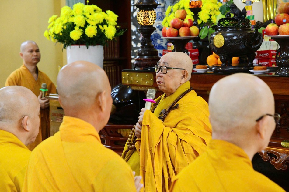 Dịp này, Thượng tọa Thích Nhật Thiện tác bạch khánh tuế đến Trưởng lão Hòa thượng Thích Như Tín và thay lời chư thiện nam tín nữ tác bạch cúng dường lên chư tôn đức mùa Vu lan - Báo hiếu.