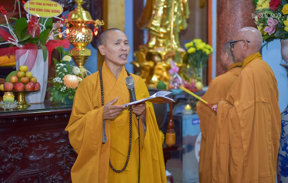 | Thượng tọa Thích Minh Quang hướng dẫn đại chúng tụng kinh |