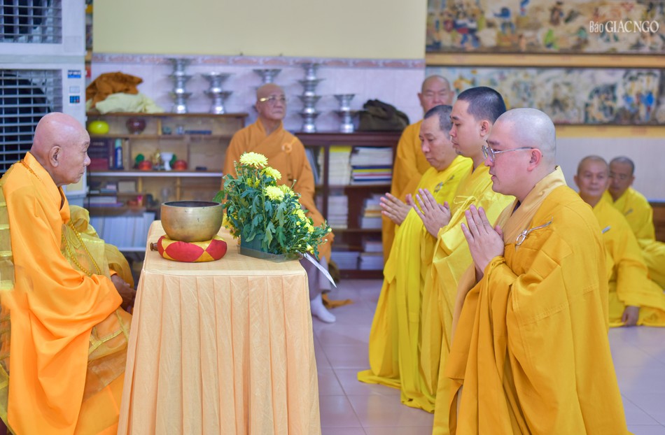 GNO - Chiều nay, 12-7-Ất Tỵ (3-9), chư Tăng tại các điểm an cư trên địa bàn phường Phú Định, Bình Đông và Chánh Hưng đã trở về chùa Long Hoa (P.Phú Định, TP.HCM) để thực hiện nghi thức tác pháp Tự tứ, kết thúc mùa An cư kiết hạ Phật lịch 2569.