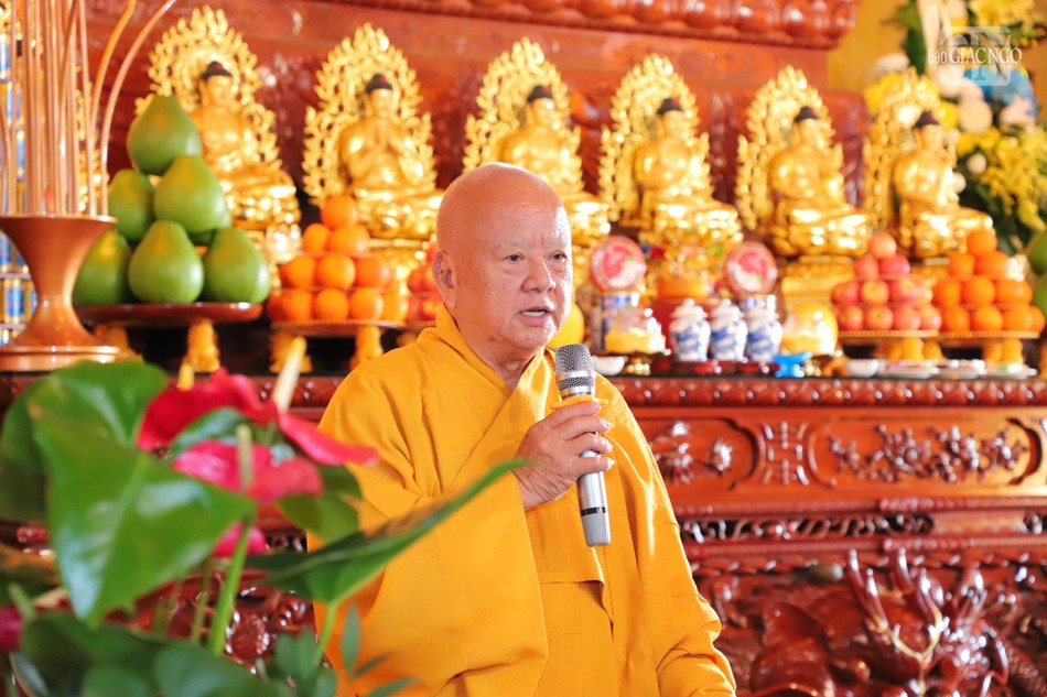 Hòa thượng Thích Thiện Minh, Trưởng ban Trị sự GHPGVN TP.Thủ Đức đại lao chư tôn giáo phẩm đáp từ và có lời sách tấn đến toàn thể chư Tăng hiện diện.